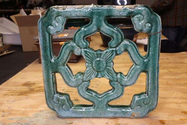 Antique Chinese Jade Breezeway Tiki Tile Turquoise Architecture Garden Tile, 12-1/2X1-3/8", 4#