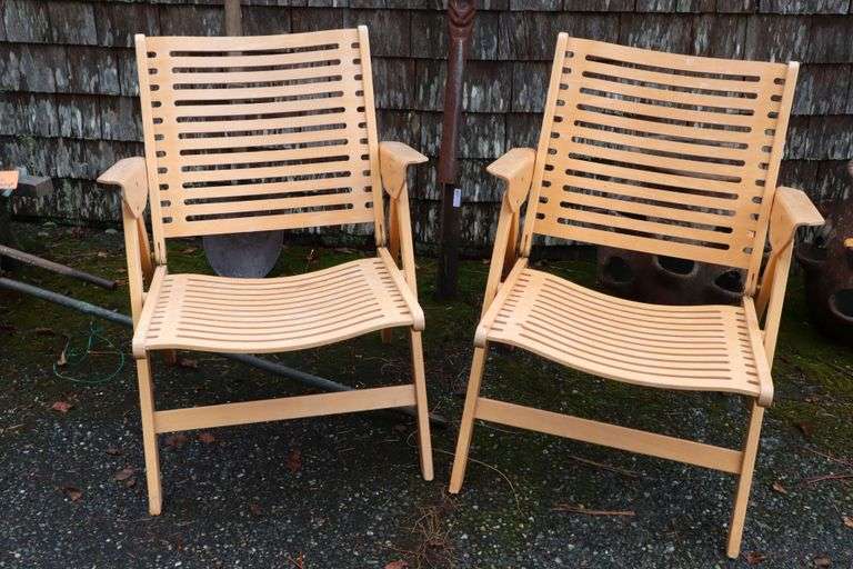 Pair Mid Century Modern Niko Kralj Folding Chairs, Wood, 27X22.5X29"H