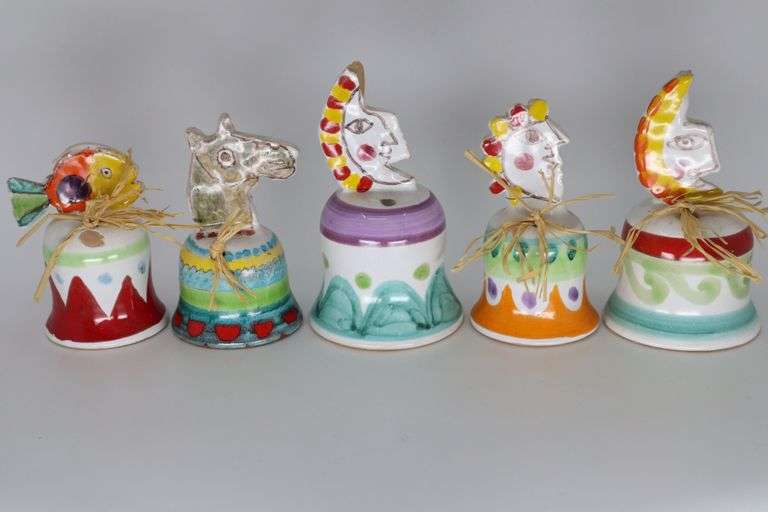 5 Desimone Italy Ceramic Bells, See Condition Notes. 3.25X5.5"H(Largest)