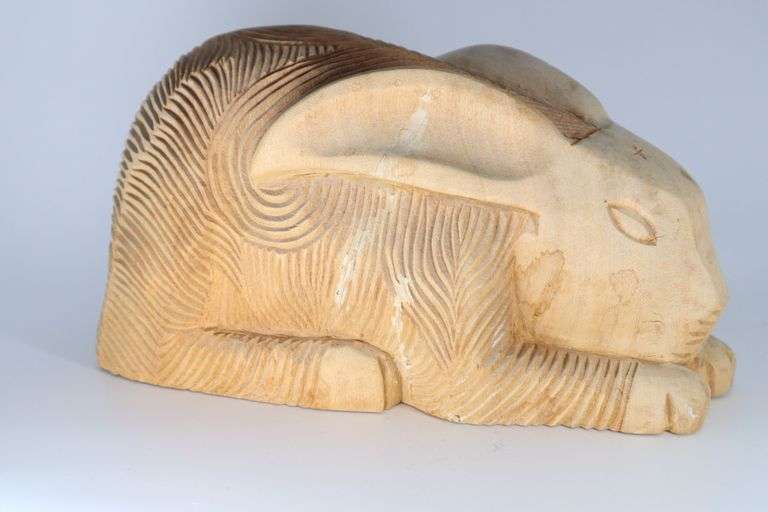 Arthur Court Carved Wooden Rabbit, 1980, 4X10X5"H.
