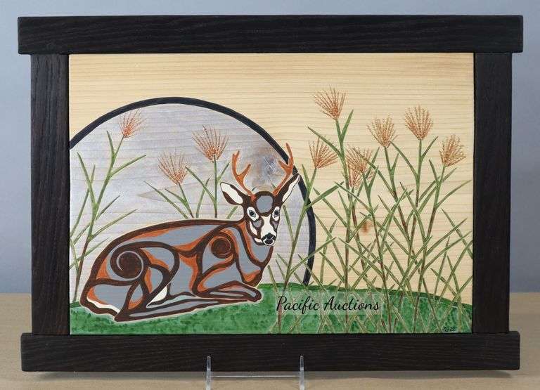 DESCRIPTION: AUTUMN DEER ACRYLICS ON CEDAR W/RED OAK SHOU-SUGI-BAN FRAME, 20X14.25"H FALL 2022, BY GARY GIOVANE CONDITION: Please See Photos For Condition. Condition Is Commensurate With Age And Use. We Aim To Take Additional Photos Of Any Noticeable Damage Or Defect. Please Email Auctionmanager@Pacificauctions.Net For Any Additional Condition Inquiries. ESTIMATE: $400 - $475