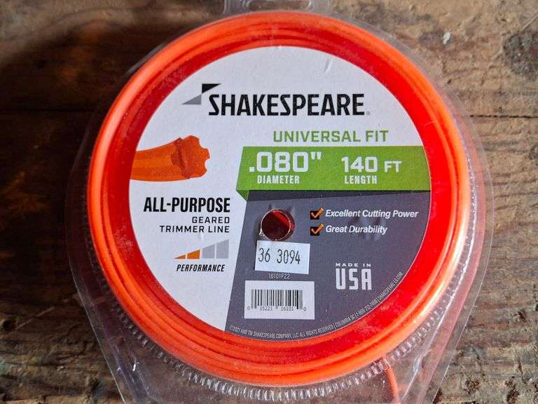 DESCRIPTION: SHAKESPEARE ALL-PURPOSE TRIMMER LINE CONDITION: Please See Photos For Condition. Condition Is Commensurate With Age And Use. We Aim To Take Additional Photos Of Any Noticeable Damage Or Defect. Please Email Auctionmanager@Pacificauctions.Net For Any Additional Condition Inquiries.