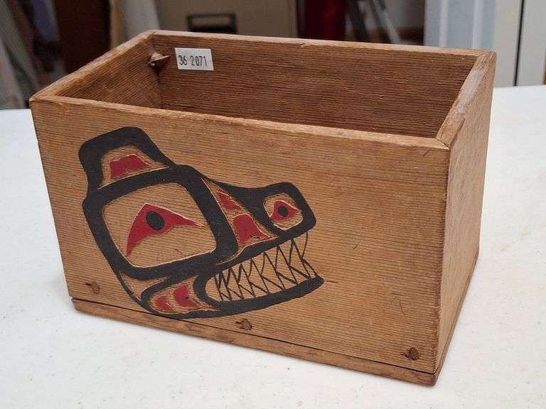 DESCRIPTION: CARVED AND PAINTED PNW STYLE BOX, NUBER 5 JAN. 1976 BY HOYT JORDAN, 7X4X4.5" CONDITION: Please See Photos For Condition. Condition Is Commensurate With Age And Use. We Aim To Take Additional Photos Of Any Noticeable Damage Or Defect. Please Email Auctionmanager@Pacificauctions.Net For Any Additional Condition Inquiries.
