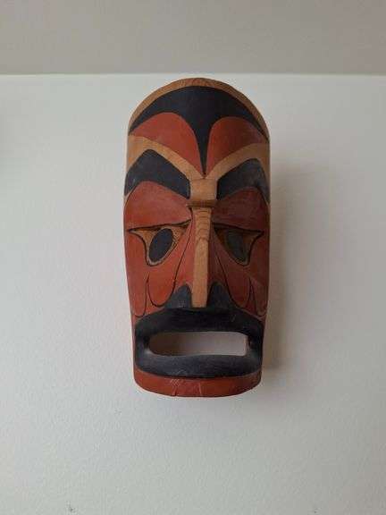 DESCRIPTION: LANCE AKIN SMALL MAKAH FRIENDSHIP MASK, 7". "Makah artist Lance Akin was a former student at Neah Bay and does beautiful work. We were glad to have purchased several pieces of his." CONDITION: Please See Photos For Condition. Condition Is Commensurate With Age And Use. We Aim To Take Additional Photos Of Any Noticeable Damage Or Defect. Please Email Auctionmanager@Pacificauctions.Net For Any Additional Condition Inquiries.