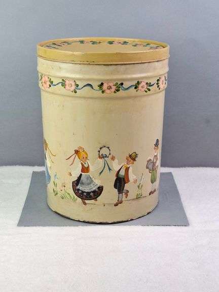 DESCRIPTION: DUTCH FOLK ART HAND PAINTED METAL BUCKET WITH LID, TRASH CAN, DANCING COUPLES, SIGNED FRAN '83, 13.25".. CONDITION: Please See Photos For Condition. Condition Is Commensurate With Age And Use. We Aim To Take Additional Photos Of Any Noticeable Damage Or Defect. Please Email Auctionmanager@Pacificauctions.Net For Any Additional Condition Inquiries.