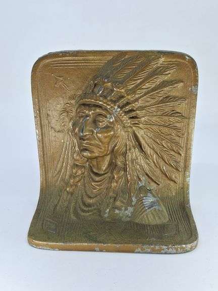 DESCRIPTION: VINTAGE CAST METAL NATIVE INDIAN CHIEF BOOKEND. CONDITION: Please See Photos For Condition. Condition Is Commensurate With Age And Use. We Aim To Take Additional Photos Of Any Noticeable Damage Or Defect. Please Email Auctionmanager@Pacificauctions.Net For Any Additional Condition Inquiries.