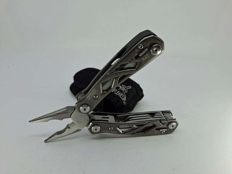 DESCRIPTION: GERBER SUSPENSION MULTI TOOL WITH POUCH.. CONDITION: Please See Photos For Condition. Condition Is Commensurate With Age And Use. We Aim To Take Additional Photos Of Any Noticeable Damage Or Defect. Please Email Auctionmanager@Pacificauctions.Net For Any Additional Condition Inquiries.
