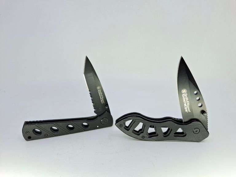 DESCRIPTION: PAIR SMITH & WESSON EXTREME OPS POCKET KNIVES, ALL BLACK SKELETON HANDLE. CONDITION: Please See Photos For Condition. Condition Is Commensurate With Age And Use. We Aim To Take Additional Photos Of Any Noticeable Damage Or Defect. Please Email Auctionmanager@Pacificauctions.Net For Any Additional Condition Inquiries.