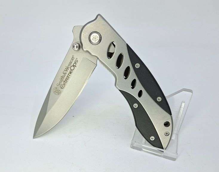 DESCRIPTION: SMITH & WESSON EXTREME OPS POCKET KNIFE, SILVER STEEL AND BLACK, APPROX 3.5". CONDITION: Please See Photos For Condition. Condition Is Commensurate With Age And Use. We Aim To Take Additional Photos Of Any Noticeable Damage Or Defect. Please Email Auctionmanager@Pacificauctions.Net For Any Additional Condition Inquiries.