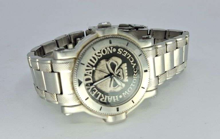 DESCRIPTION: HARLEY DAVIDSON BULOVA WATCH, STAINLESS STEEL. CONDITION: Please See Photos For Condition. Condition Is Commensurate With Age And Use. We Aim To Take Additional Photos Of Any Noticeable Damage Or Defect. Please Email Auctionmanager@Pacificauctions.Net For Any Additional Condition Inquiries.