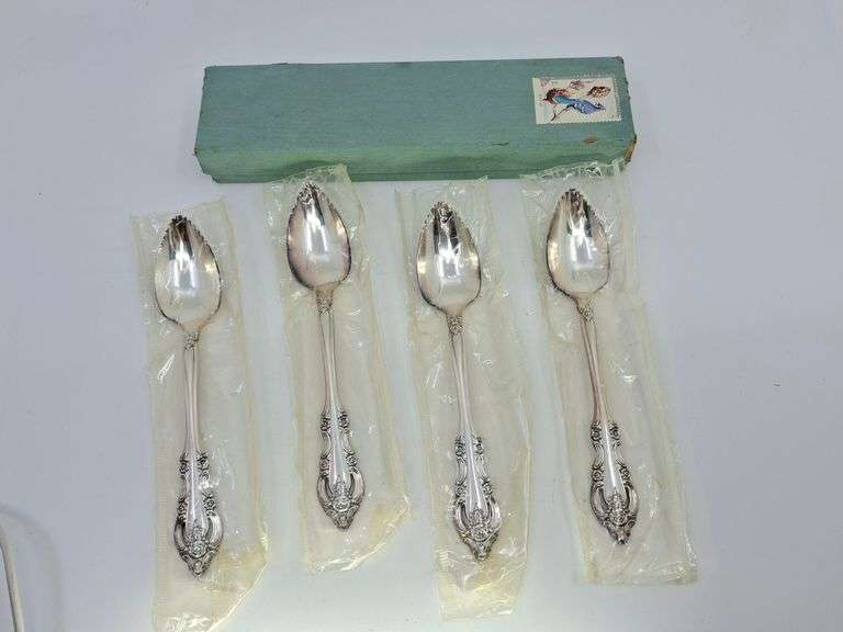 DESCRIPTION: SET OF 4 VINTAGE SILVERPLATE MELON SPOONS, NEW. CONDITION: Please See Photos For Condition. Condition Is Commensurate With Age And Use. We Aim To Take Additional Photos Of Any Noticeable Damage Or Defect. Please Email Auctionmanager@Pacificauctions.Net For Any Additional Condition Inquiries.