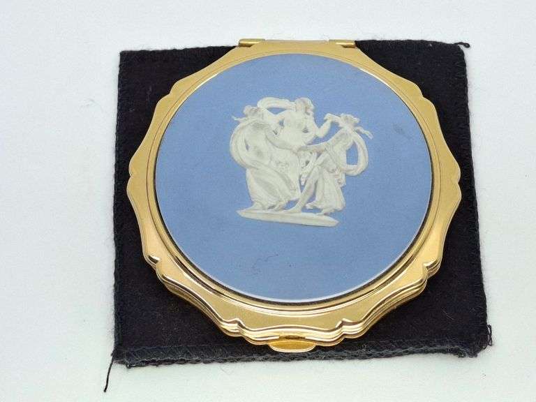 DESCRIPTION: ANTIQUE WEDGWOOD BLUE JASPER STRATTON COMPACT, 3.5". . CONDITION: Closure needs adjustment. Please See Photos For Condition. Condition Is Commensurate With Age And Use. We Aim To Take Additional Photos Of Any Noticeable Damage Or Defect. Please Email Auctionmanager@Pacificauctions.Net For Any Additional Condition Inquiries.