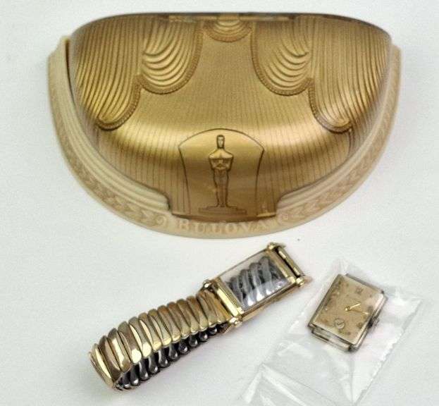 DESCRIPTION: BULOVA ACADEMY AWARD WATCH WITH PRESENTATION BOX, 1940-50s. CONDITION: Please See Photos For Condition. Condition Is Commensurate With Age And Use. We Aim To Take Additional Photos Of Any Noticeable Damage Or Defect. Please Email Auctionmanager@Pacificauctions.Net For Any Additional Condition Inquiries.
