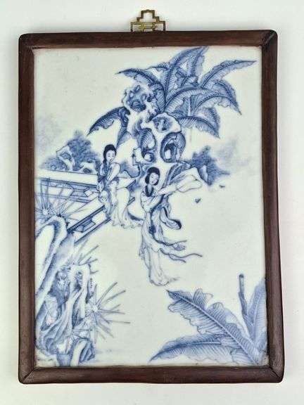 DESCRIPTION: CHINESE BLUE AND WHITE PORCELAIN PLAQUE, OR SCREEN, FRAMED IN WOOD CASE WITH HANGER, HEAVY, 10.25 X 13.75"H. CONDITION: Please See Photos For Condition. Condition Is Commensurate With Age And Use. We Aim To Take Additional Photos Of Any Noticeable Damage Or Defect. Please Email Auctionmanager@Pacificauctions.Net For Any Additional Condition Inquiries.