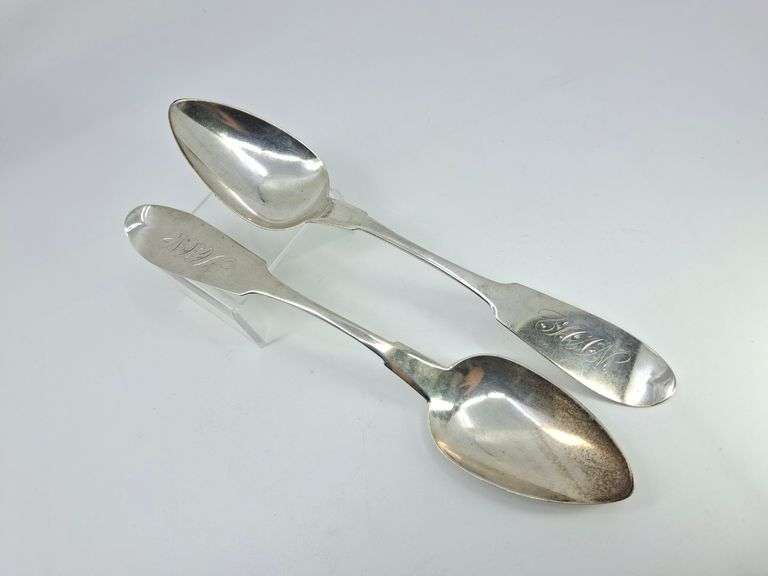 DESCRIPTION: 2) 1800'S WM ROGERS & SON COIN SILVER SERVING SPOONS 8-1/2" 80 G.. CONDITION: Please See Photos For Condition. Condition Is Commensurate With Age And Use. We Aim To Take Additional Photos Of Any Noticeable Damage Or Defect. Please Email Auctionmanager@Pacificauctions.Net For Any Additional Condition Inquiries.