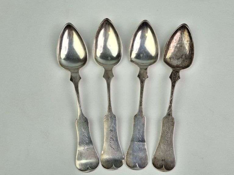 DESCRIPTION: 4) LUKE KENT(1817-1841) COIN SILVER SPOONS 6-1/8" 72 G, "H.REED", CINCI, OH.. CONDITION: Please See Photos For Condition. Condition Is Commensurate With Age And Use. We Aim To Take Additional Photos Of Any Noticeable Damage Or Defect. Please Email Auctionmanager@Pacificauctions.Net For Any Additional Condition Inquiries.