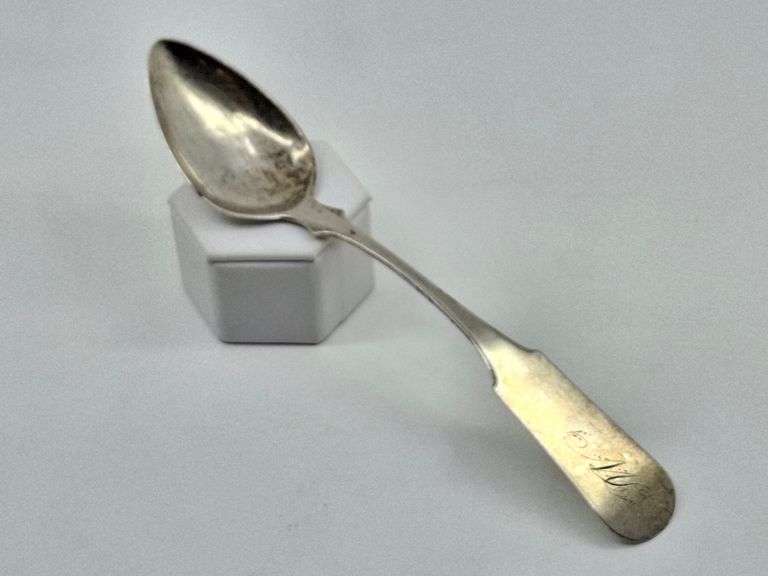 DESCRIPTION: 1834-1838 BENJAMIN F. MEEK COIN SILVER SPOON 6-3/4" 20 G. WITH MONO.. CONDITION: Please See Photos For Condition. Condition Is Commensurate With Age And Use. We Aim To Take Additional Photos Of Any Noticeable Damage Or Defect. Please Email Auctionmanager@Pacificauctions.Net For Any Additional Condition Inquiries.