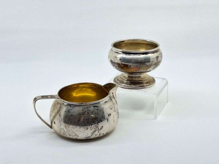 DESCRIPTION: UNRELATED STERLING SILVER SUGAR & CREAM 97 G TOTAL; LUNT 1185 CREAMER 3-3/4X1-5/8", BOWL 2-1/2X1-7/8". CONDITION: Please See Photos For Condition. Condition Is Commensurate With Age And Use. We Aim To Take Additional Photos Of Any Noticeable Damage Or Defect. Please Email Auctionmanager@Pacificauctions.Net For Any Additional Condition Inquiries.