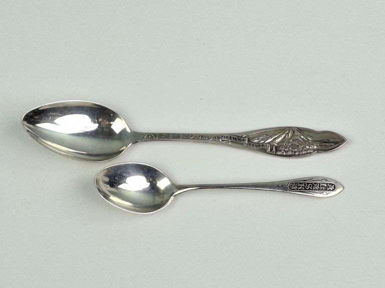 DESCRIPTION: 2) STERLING SILVER SOUVENIR SPOONS "SEATTLE" "MT RAINIER 14530 FT" & "ALASKA", 5-1/2" & 4-1/4", 34 G TOTAL. CONDITION: Please See Photos For Condition. Condition Is Commensurate With Age And Use. We Aim To Take Additional Photos Of Any Noticeable Damage Or Defect. Please Email Auctionmanager@Pacificauctions.Net For Any Additional Condition Inquiries.