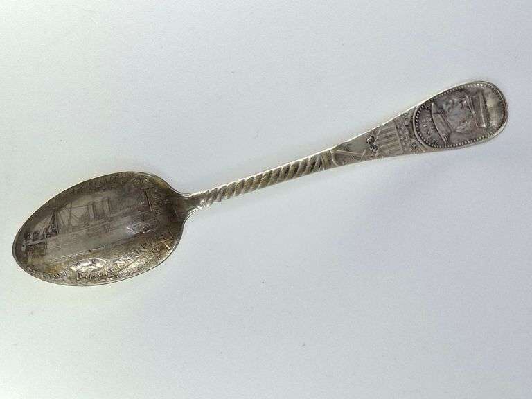 DESCRIPTION: U.S. MAINE BATTLESHIP MAINE BLOWN UP IN HAVANA HARBOR, FEB. 15 1898, SILVERPLATE COMMEMORATIVE SPOON, 4-3/8", CAPTAIN SIGSBEE. CONDITION: Please See Photos For Condition. Condition Is Commensurate With Age And Use. We Aim To Take Additional Photos Of Any Noticeable Damage Or Defect. Please Email Auctionmanager@Pacificauctions.Net For Any Additional Condition Inquiries.