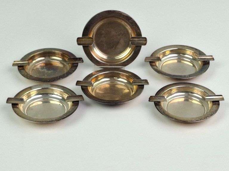 DESCRIPTION: 6) 3" STERLING ASHTRAYS BY GEORGE JENSEN?, 140 G TOTAL, DENMARK 950. CONDITION: Please See Photos For Condition. Condition Is Commensurate With Age And Use. We Aim To Take Additional Photos Of Any Noticeable Damage Or Defect. Please Email Auctionmanager@Pacificauctions.Net For Any Additional Condition Inquiries.