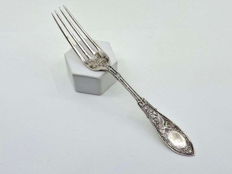 DESCRIPTION: 1875 WHITING MFG "ARABESQUE" STERLING SILVER FORK, 7-1/8" 36 G, E.P. ROBERTS & SONS. CONDITION: Please See Photos For Condition. Condition Is Commensurate With Age And Use. We Aim To Take Additional Photos Of Any Noticeable Damage Or Defect. Please Email Auctionmanager@Pacificauctions.Net For Any Additional Condition Inquiries.
