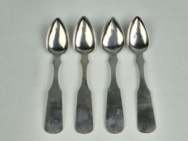 DESCRIPTION: 1816 COIN SILVER SPOONS, 4)5-5/8" 51 G, J. DRAPER. CONDITION: Please See Photos For Condition. Condition Is Commensurate With Age And Use. We Aim To Take Additional Photos Of Any Noticeable Damage Or Defect. Please Email Auctionmanager@Pacificauctions.Net For Any Additional Condition Inquiries.