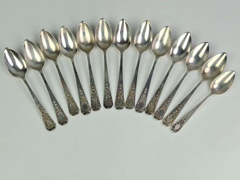 DESCRIPTION: 1909 STERLING SILVER WHITING "MADAM JUMEL" FLATWARE, 12)5-7/8", 1)5-1/4", 321 G, NO MONO.. CONDITION: Please See Photos For Condition. Condition Is Commensurate With Age And Use. We Aim To Take Additional Photos Of Any Noticeable Damage Or Defect. Please Email Auctionmanager@Pacificauctions.Net For Any Additional Condition Inquiries.