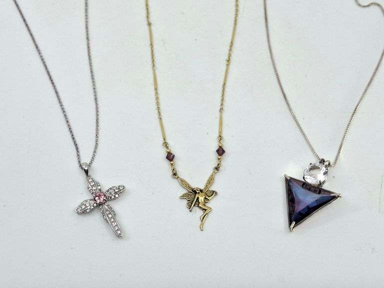 DESCRIPTION: GROUP OF NECKLACES, SILVER CROSS, AMETHYST, FAIRY. CONDITION: Please See Photos For Condition. Condition Is Commensurate With Age And Use. We Aim To Take Additional Photos Of Any Noticeable Damage Or Defect. Please Email Auctionmanager@Pacificauctions.Net For Any Additional Condition Inquiries.