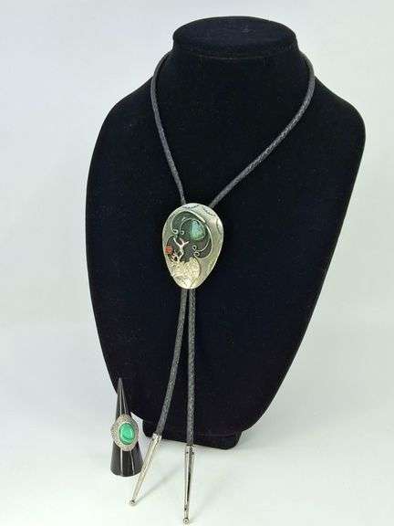 DESCRIPTION: STERLING SILVER & LEATHER BOLO TIE AND RING, SZ 6 925. CONDITION: Please See Photos For Condition. Condition Is Commensurate With Age And Use. We Aim To Take Additional Photos Of Any Noticeable Damage Or Defect. Please Email Auctionmanager@Pacificauctions.Net For Any Additional Condition Inquiries.