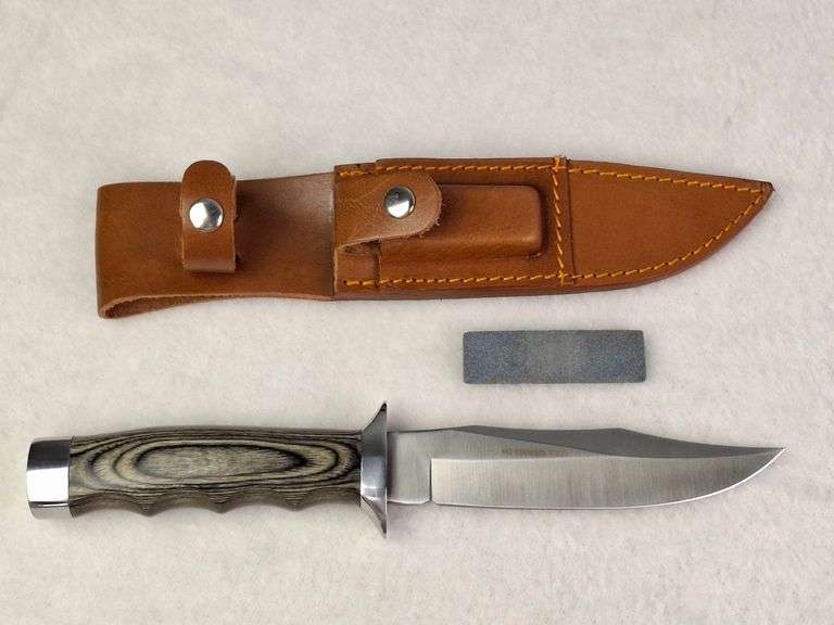 DESCRIPTION: MAGNUM BY BOKER JUNGLE DEVIL SAFARI MATE, STAINLESS STEEL WITH LEATHER SHEATH, 12", AND SHARPENING STONE.. CONDITION: Nibble marks on corners of plaque. Please See Photos For Condition. Condition Is Commensurate With Age And Use. We Aim To Take Additional Photos Of Any Noticeable Damage Or Defect. Please Email Auctionmanager@Pacificauctions.Net For Any Additional Condition Inquiries.