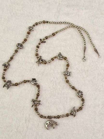 DESCRIPTION: SILVER BEADED ANIMAL NECKLACE, SHUBES MANUT INC, MARKED 69 925, 32". 69.19 TOTAL GRAMS.. CONDITION: Please See Photos For Condition. Condition Is Commensurate With Age And Use. We Aim To Take Additional Photos Of Any Noticeable Damage Or Defect. Please Email Auctionmanager@Pacificauctions.Net For Any Additional Condition Inquiries.
