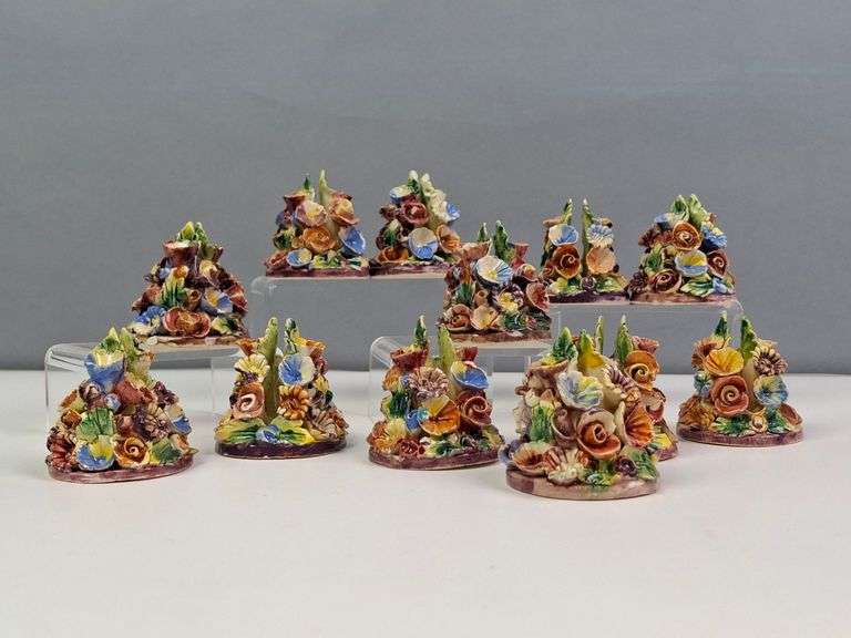 DESCRIPTION: VINTAGE HAND PAINTED ITALIAN CERAMIC PLACE CARD HOLDERS, SET OF 12. CONDITION: Please See Photos For Condition. Condition Is Commensurate With Age And Use. We Aim To Take Additional Photos Of Any Noticeable Damage Or Defect. Please Email Auctionmanager@Pacificauctions.Net For Any Additional Condition Inquiries.