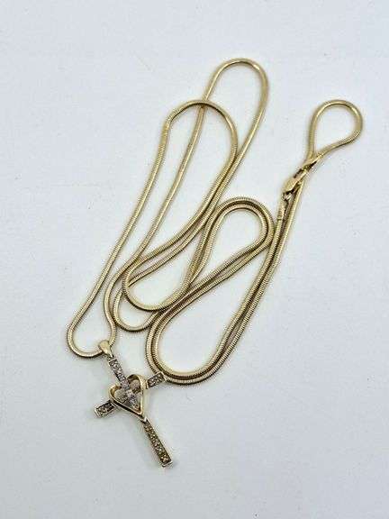 DESCRIPTION: LONG GOLD SNAKE CHAIN WITH GOLD CROSS, 14K, 16.44 G, 29". . CONDITION: Please See Photos For Condition. Condition Is Commensurate With Age And Use. We Aim To Take Additional Photos Of Any Noticeable Damage Or Defect. Please Email Auctionmanager@Pacificauctions.Net For Any Additional Condition Inquiries.