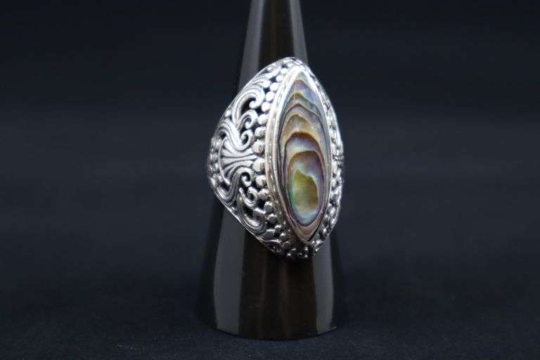 LOT 101 - Sterling Silver Ring, Oval Abalone Shell, 925 Approx. Ring Size 8