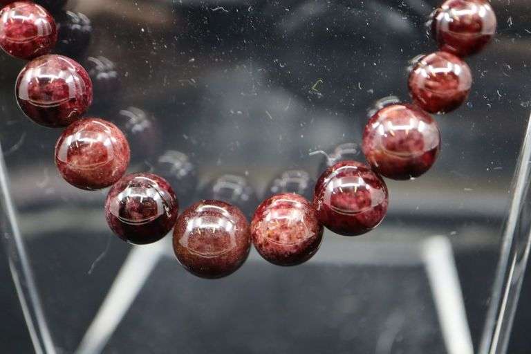 LOT 346 - Pink Garnet Beaded Necklace, approx. 17"