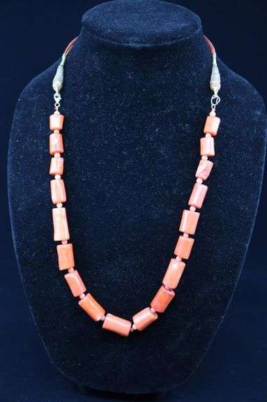 LOT 329 - Orange Sea Bamboo Necklace with Corded Extension Chain, approx. 36"