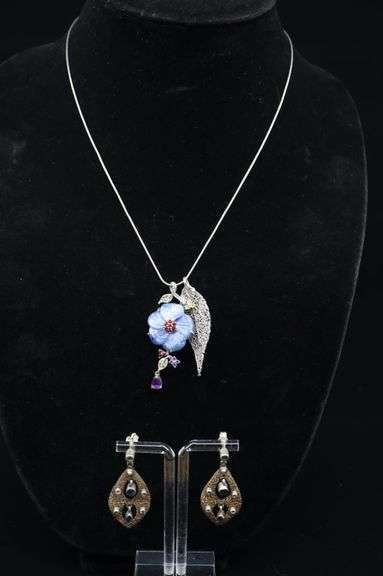 Sterling Silver Leaf and Floral Pendant on Sterling Silver Chain, and Sterling Silver Drop Earrings