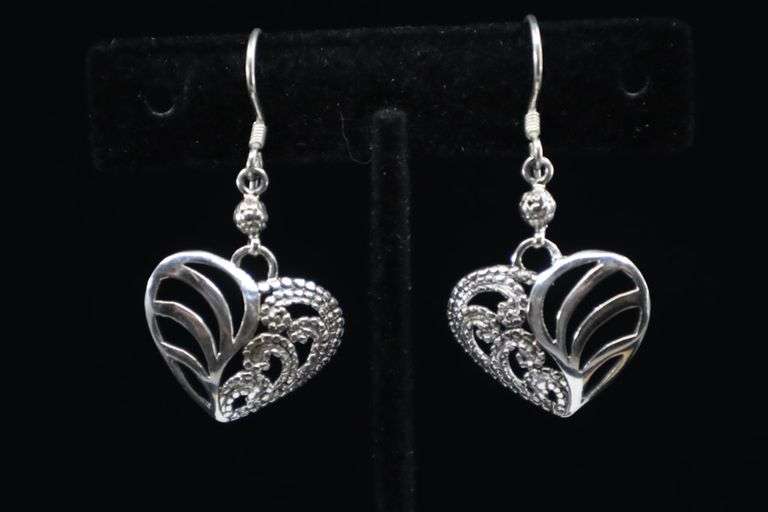 LOT 1067A - Sterling Silver Heart Earrings, 925