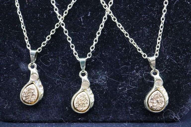 LOT 1039 - Gold Druzy Pendants and Necklaces, Stainless Steel