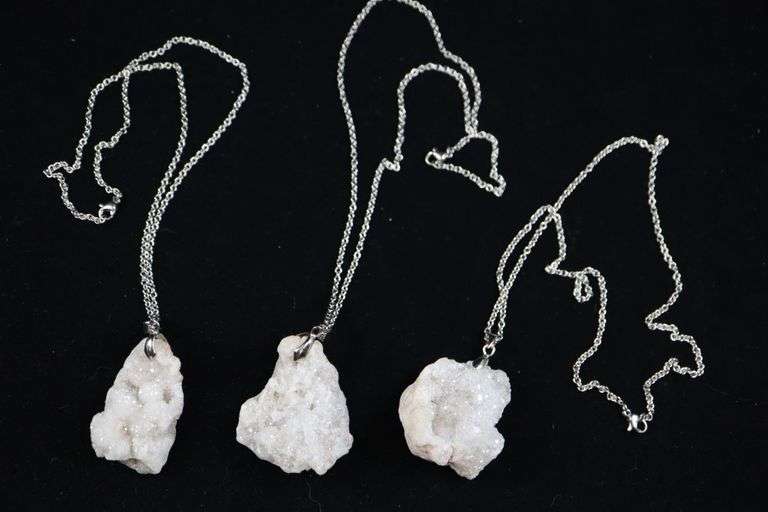 LOT 1040 - White Quartz Rock Pendants and Stainless Steel Chains