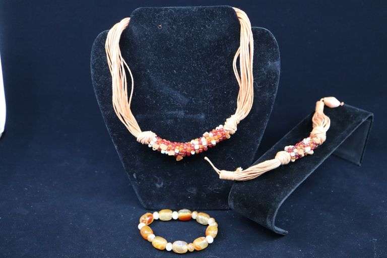 LOT 1036 - Orange Beaded Necklace and Bracelets