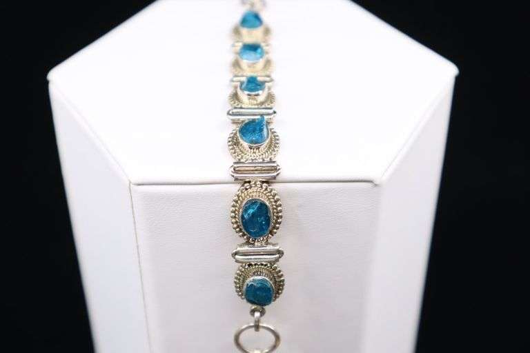 LOT 828A - Sterling Silver & Blue Fluorite Stone Bracelet, 925